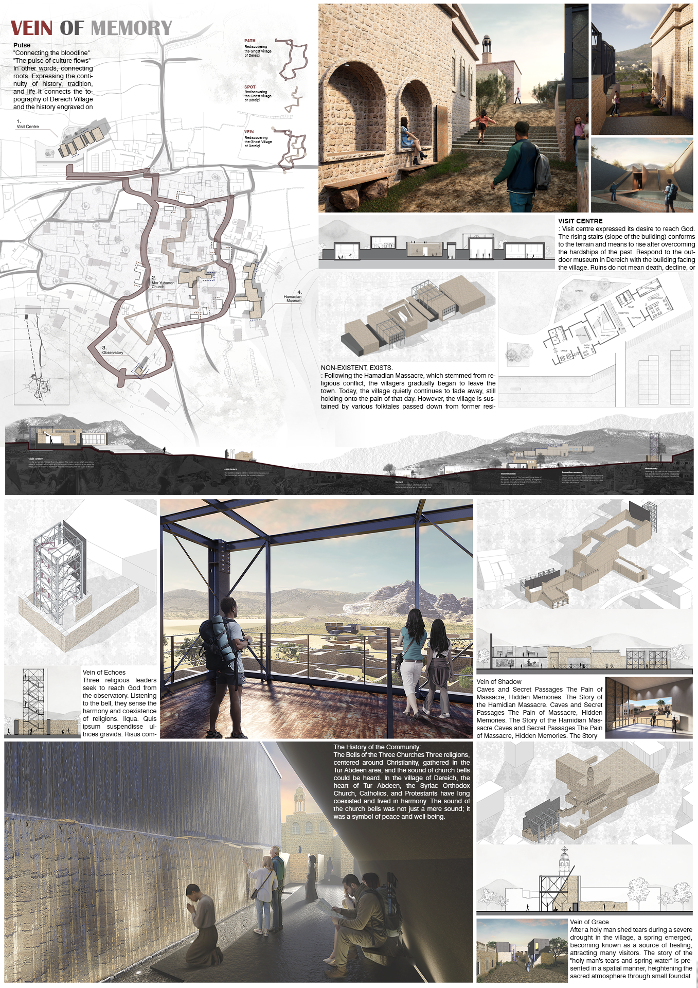 Dereich is a ‘ghost village’ with few people currently living. After the Hamadian massacre resulting from religious conflict, the villagers gradually began to leave the village, and to the present day, the village is still quietly disappearing with the pain of the day. However, the past, which flourished with the harmony and belief of the three religions looking at one god, still passes down from the depths of the residents’ hearts. The village’s folktales and beings who still preserve the village’s history are connecting the veins of the village’s history. Based on the folktales that proved the pain of the massacre and the power of faith, an outdoor museum was planned to connect the ‘Mac’ of Dereich Village from the past to the present. The village seems to be disappearing, but it still has history. Therefore, it does not exist, but it exists.